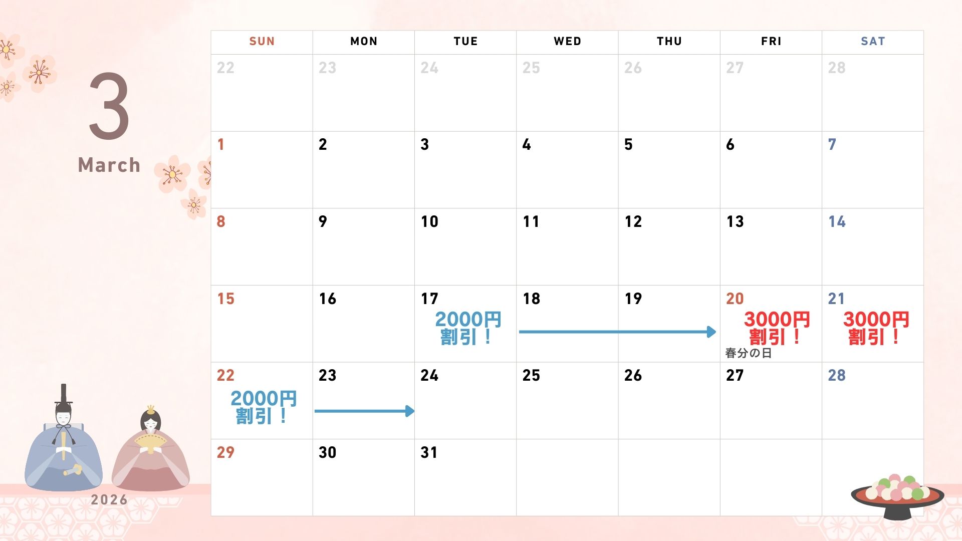 お客さま待望の割引週間が決定!! エテルナの激アツキャンペーン開催中♡